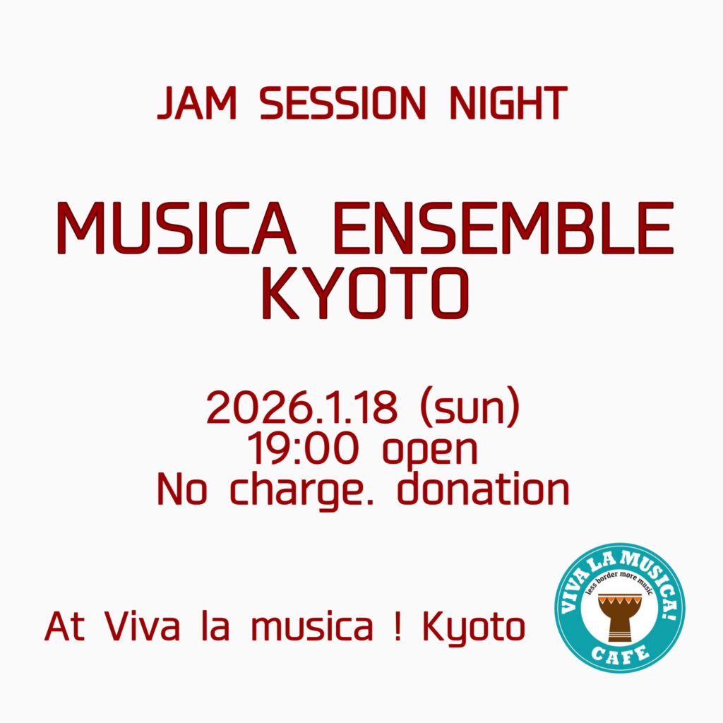 1/18 (sun) Jam session night. “MUSICA ENSEMBLE KYOTO”